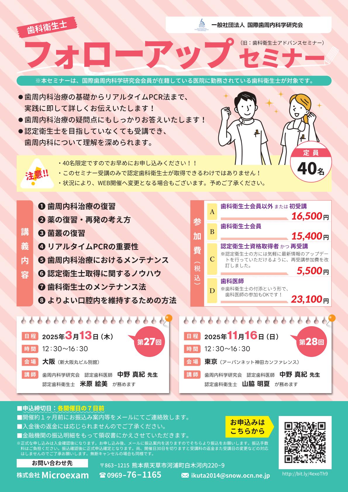 歯周内科治療を学びたい・臨床の復習・確認をしたい・知識・スキルのバージョンアップ・グレードアップをしたいという衛生士さん向けセミナー