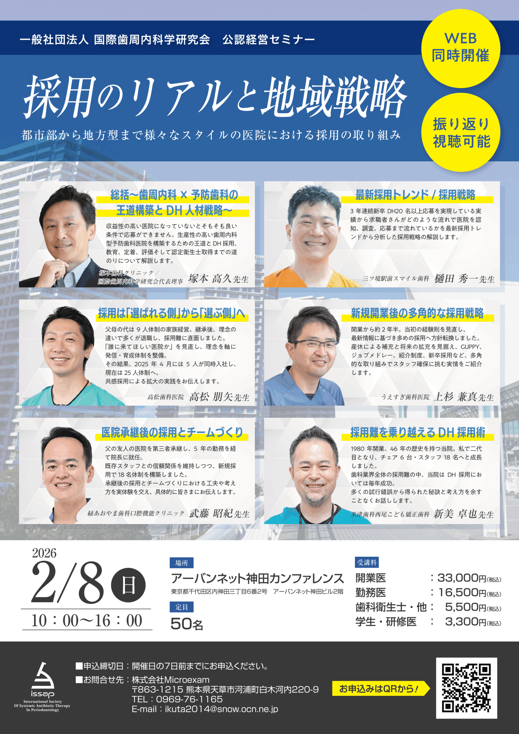 実際に経営に携わる全国TOPクラスの院長陣が講師となり、歯科医院の経営に特化した内容を毎年テーマを変えて提供するセミナー。