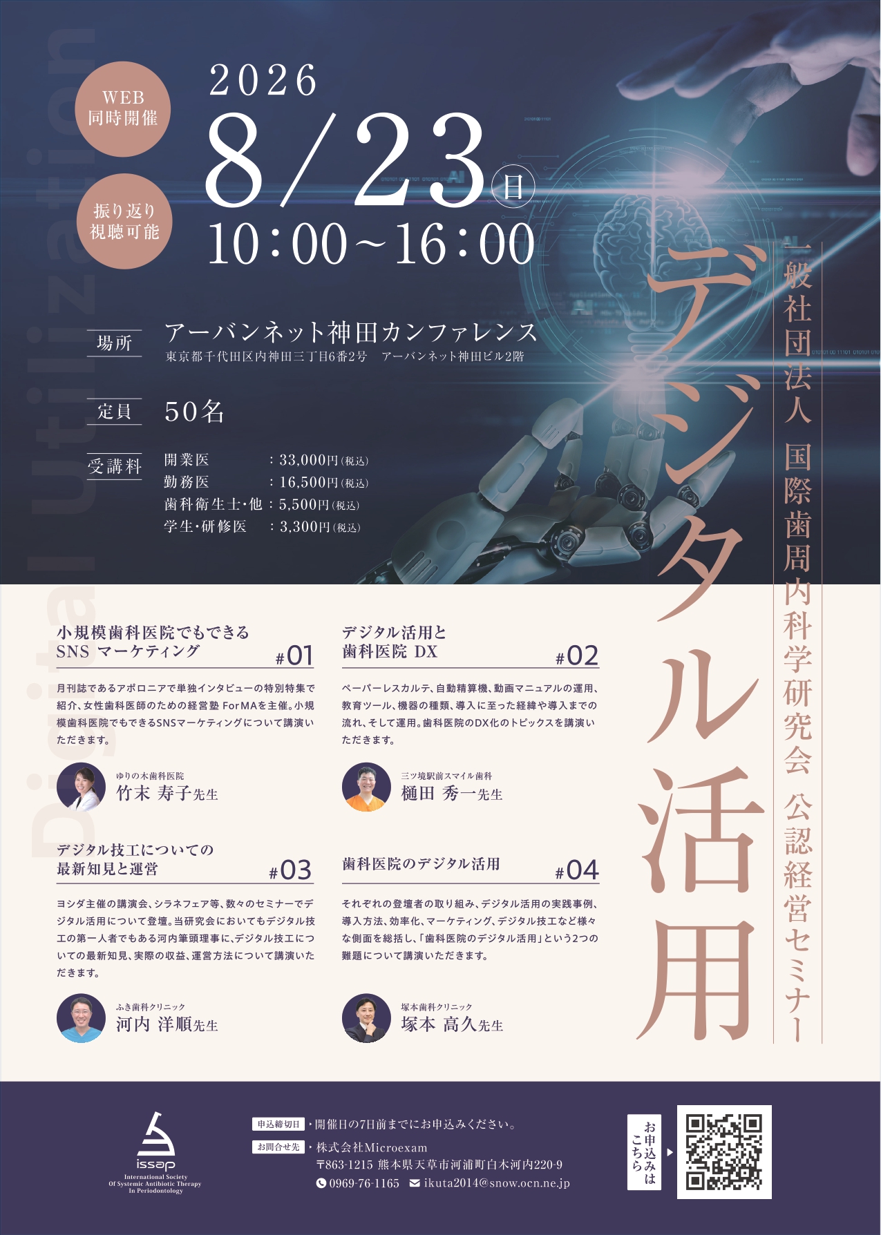 実際に経営に携わる全国TOPクラスの院長陣が講師となり、歯科医院の経営に特化した内容を毎年テーマを変えて提供するセミナー。